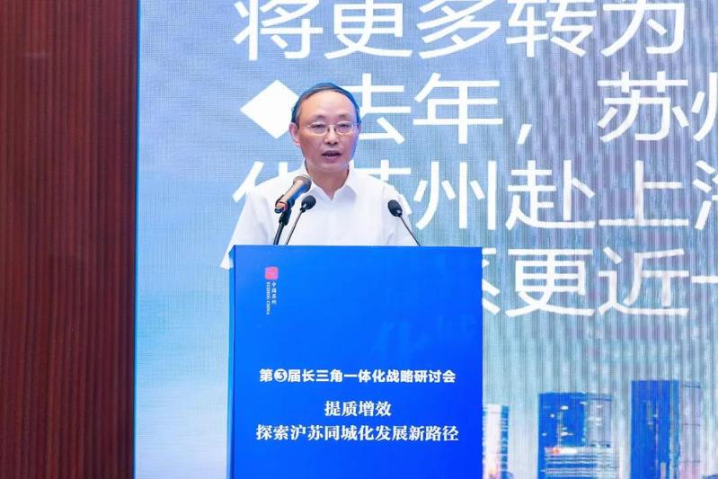 卢宁围绕“推进沪苏同城发展的苏州实践与思考”,提出把理念共识深度融合作为推进沪苏同城发展的先决条件、把基础设施对接融合作为推进沪苏同城发展的关键保障、把产业经济协同融合作为推进沪苏同城发展的核心支撑、把资源要素聚集融合作为推进沪苏同城发展的活力源泉、把公共服务共享融合作为推进沪苏同城发展的重要内容、把政策优势加速融合作为推进沪苏同城发展的制度优势。