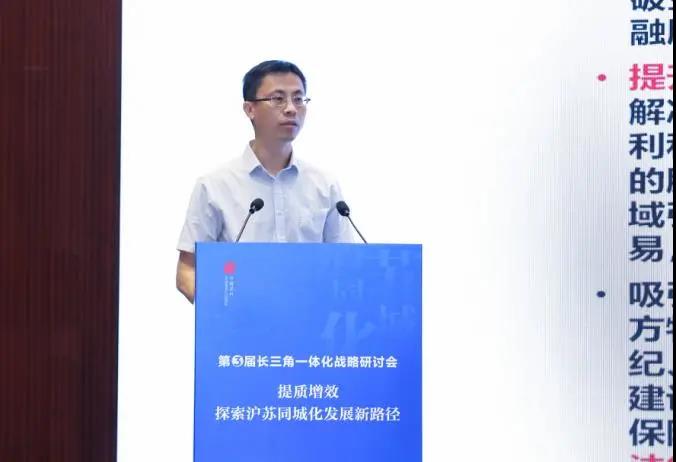 张勇围绕“长三角一体化国家战略下沪苏同城化的思路与建议”,提出沪苏同城化是沪苏两地深度融合、引领长三角一体化战略的重要使命。开展沪苏同城化研究,旨在推动两地城市功能互补、产业同链、创新同源、设施同网、服务同等、制度同型,为长三角和全国树立区域更高质量一体化发展的样板。