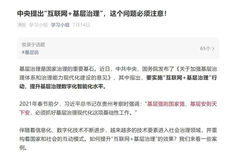 基层治理是国家治理的重要基石。近日,中共中央、国务院发布了《关于加强基层治理体系和治理能力现代化建设的意见》,其中指出,要实施“互联网+基层治理”行动,提升基层治理数字化智能化水平。