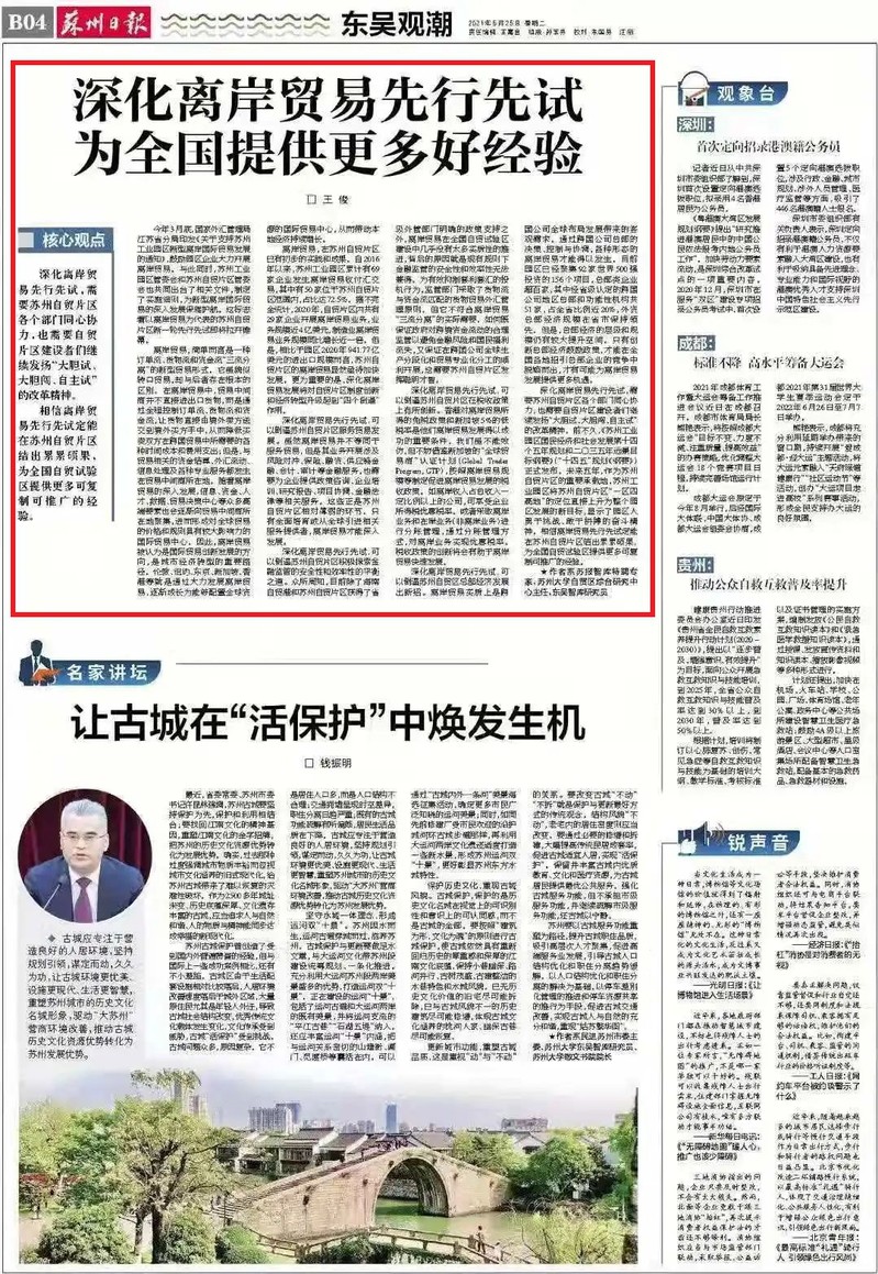 相信离岸贸易先行先试定能在苏州自贸片区结出累累硕果,为全国自贸试验区提供更多可复制可推广的经验。