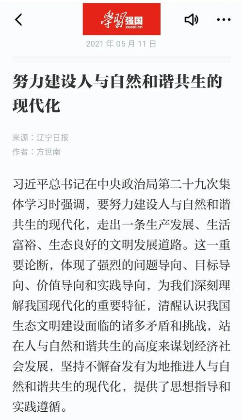 习近平总书记在中央政治局第二十九次集体学习时强调,要努力建设人与自然和谐共生的现代化,走出一条生产发展、生活富裕、生态良好的文明发展道路。这一重要论断,体现了强烈的问题导向、目标导向、价值导向和实践导向,为我们深刻理解我国现代化的重要特征,清醒认识我国生态文明建设面临的诸多矛盾和挑战,站在人与自然和谐共生的高度来谋划经济社会发展,坚持不懈奋发有为地推进人与自然和谐共生的现代化,提供了思想指导和实践遵循。