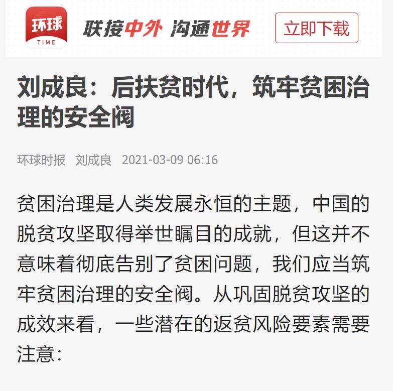 环球时报等 | 刘成良:后扶贫时代,筑牢贫困治理的安全阀