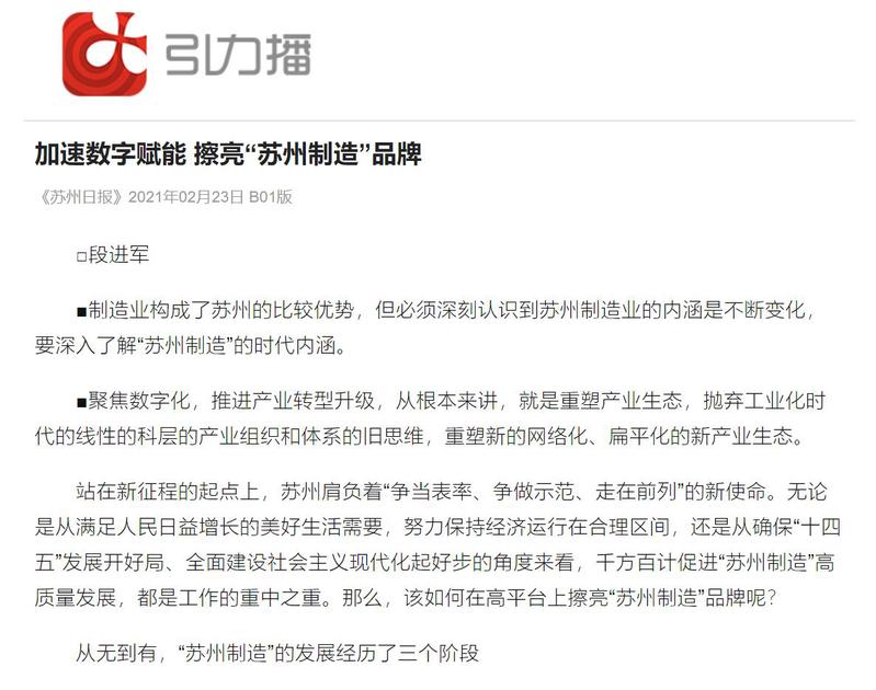 三、数字赋能,擦亮“苏州制造”品牌不会一蹴而就