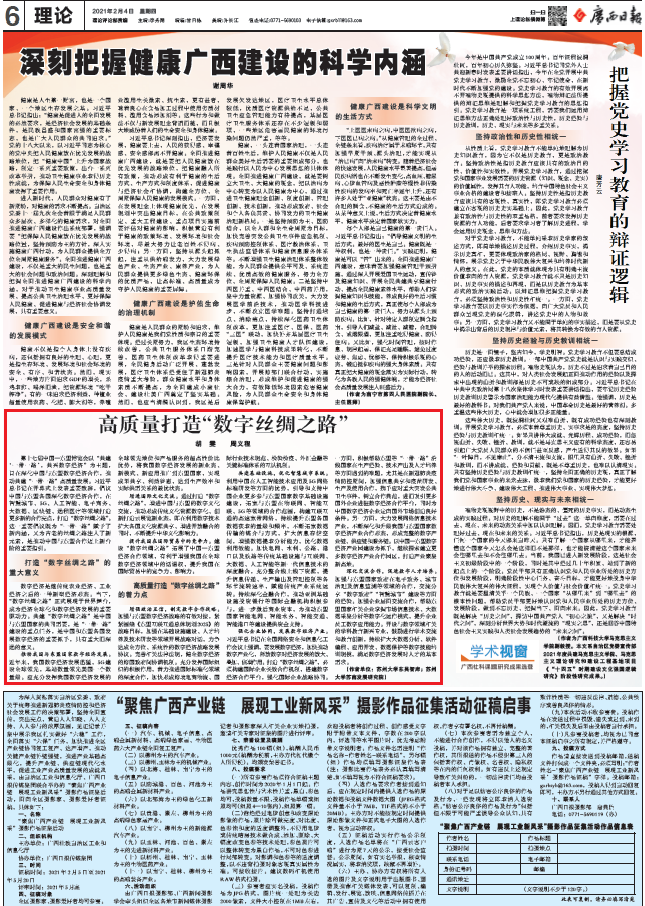 【编者按】第十七届中国—东盟博览会以“共建‘一带一路’,共兴数字经济”为主题,旨在深化中国与东盟数字经济合作,推动共建“一带一路”高质量发展。作者紧紧围绕习近平总书记重要倡议,从打造“数字丝绸之路”的重大意义和高质量打造“数字丝绸之路”的着力点两个方面展开深入探究。现将全文奉上,以飨读者。