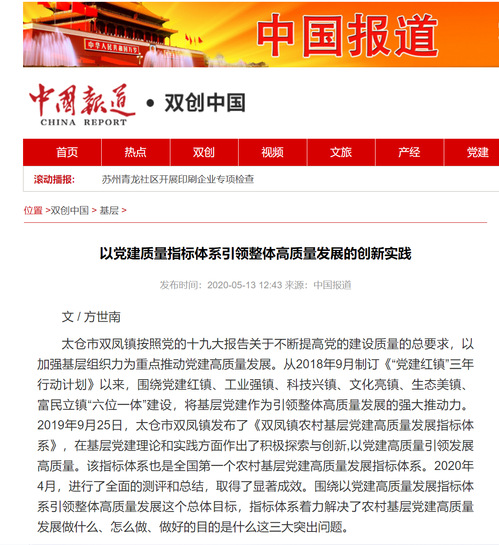 双凤镇按照党的十九大报告中关于不断提高党的建设质量的总要求,以加强基层组织力为重点推动党建高质量发展。从2018年9月制定《“党建红镇”三年行动计划》以来,围绕党建红镇、工业强镇、科技兴镇、文化亮镇、生态美镇、富民立镇“六位一体”建设,将基层党建作为引领整体高质量发展的强大推动力。2019年9月25日,双凤镇发布了《双凤镇农村基层党建高质量发展指标体系》,在基层党建理论和实践方面作出了积极探索与创新,以党建高质量引领发展高质量。该指标体系也是全国第一个农村基层党建高质量发展指标体系。2020年4月,进行了全面的测评和总结,取得了显著成效。围绕以党建高质量发展指标体系引领整体高质量发展这个总体目标,指标体系着力解决了农村基层党建高质量发展做什么、怎么做、做好的目的是什么这三大突出问题。