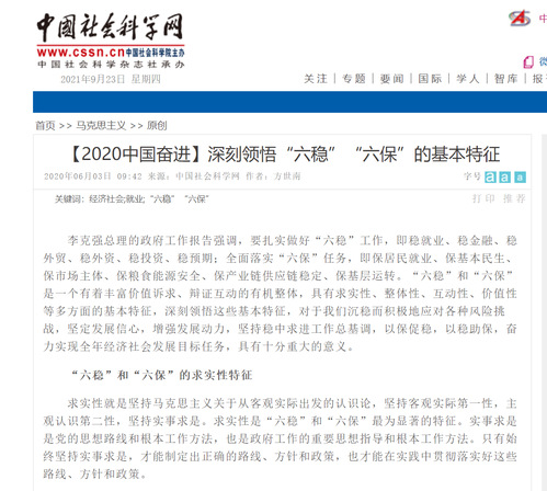 马克思主义对经济社会发展的研究始终都置于价值论视角考察,揭示经济社会发展背后的价值诉求、价值目标和价值愿景。只有深刻领悟“六稳”和“六保”的深厚价值性特征,才能以强烈的政治责任、政治使命和政治担当努力做好“六稳”和“六保”工作。