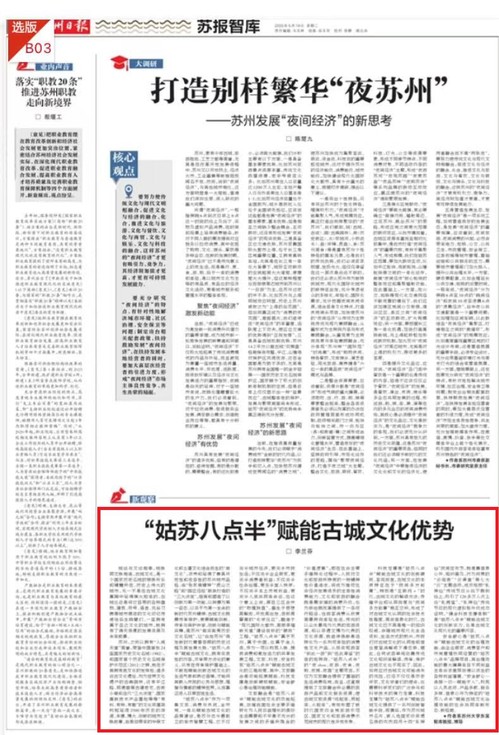 “姑苏八点半”作为一项集文旅、消费与休闲,全市域、一体化赋能古城文化的品牌建设,是苏州迄今最前卫的举市智慧工程,它不仅关乎城市经济,更关乎市民生活;不仅关乎企业商家,更关乎消费者利益;不仅关乎社会治理,更关乎宜人秩序;不仅关乎本土市域利益,更关乎人类共同体命运。在这个意义上说,源自三区合并的“物理拼盘”,催生于思想再解放、开放再出发、目标再攀高的“化学反应”,瞄准于“现代国际大都市、美丽幸福新天堂”建设目标的“硬核”工程,“姑苏八点半”属于苏州,属于中国,也属于全人类。作为一项以构筑人脉、提质消费和激发活力的共享发展工程,文旅、科技、安全构筑“姑苏八点半”赋能古城文化的三维向度。其中,文旅融合是功能拓展赋能,科技支撑是创新硬核赋能,安全舒心是治理效能赋能。