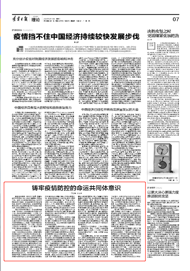 【编者按】新型冠状病毒肺炎疫情发生后,党中央、国务院高度重视,习近平总书记时刻关注疫情形势,把疫情防控作为头等大事来抓,亲自指挥、亲自部署,作出一系列重要指示,为坚决打赢疫情防控的人民战争、总体战、阻击战坚定信心、指明方向。东吴智库积极落实要求、响应号召。针对新型冠状病毒肺炎疫情防控工作,智库学者开展理论探索与政策建言,助力科学防治、精准施策,构筑好群防群治的严密防线,坚决打赢疫情防控阻击战。近日,《辽宁日报》刊登东吴智库首席专家方世南、苏州大学马克思主义学院张云婷的文章《铸牢疫情防控的命运共同体意识》,现将全文分享如下。