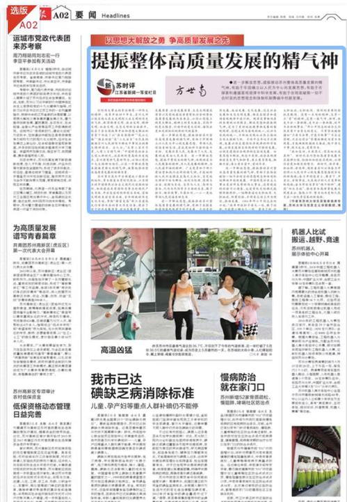 苏州勇当高水平全面建成小康社会的标杆,勇当探索具有时代特征、江苏特点的中国特色社会主义现代化道路的标杆,加快建设具有国际竞争力的现代产业名城、开放包容的创新创业名城、富裕文明的美丽宜居名城、古今辉映的历史文化名城,争做“强富美高”新江苏建设先行军排头兵的重大历史任务,提出了对于经济发展质量、政治发展质量、文化发展质量、社会发展质量、生态文明建设质量以及党的建设质量有机结合的整体高质量发展的内在要求,必须以思想上的更大解放,精神上的更大振奋,实践中的更大探索,行动中的更大创新,谱写出更加光辉灿烂的新时代新篇章。