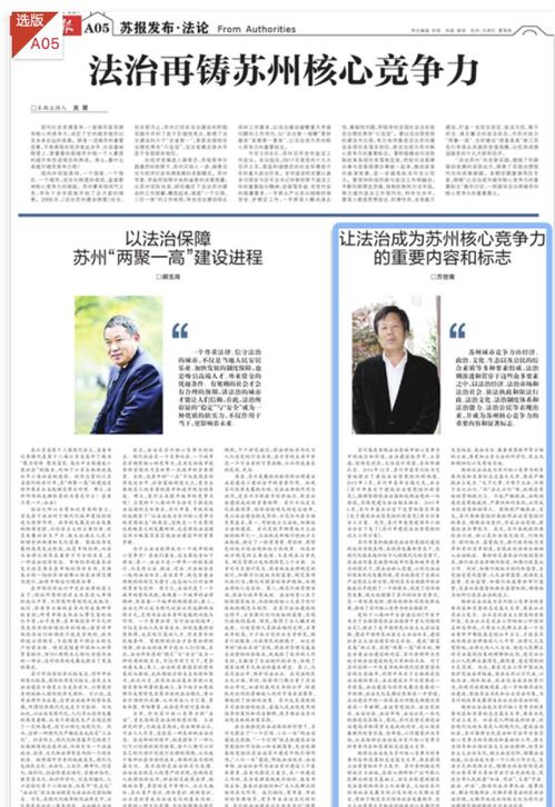 做好让法治成为苏州核心竞争力的重要内容和显著标志这篇大文章,要在提高立法质量和水平上发力。苏州要积极运用好地方立法权,在深入调研和广泛听取人民群众的意见基础上,制定出既遵循国家宪法原则和符合上位法要求,又切合苏州经济社会发展实际以及体现人民群众需求,有助于规范苏州经济社会发展秩序、显示立法质量水平和法的权威性以及操作性强的法律条文。要在注重经济立法与社会立法、生态立法并重的同时,进一步加强重点领域特别是有关生态环境、人民群众的生态权益、食品安全、服务质量提升等方面的立法,要更加注重立法的科学化、民主化和精细化以及有效实施。