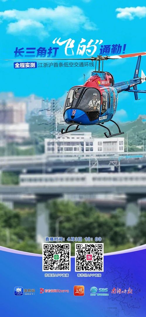 4月3日上午10:00,苏州市广播电视总台看苏州新闻客户端联合潮新闻、上观新闻、看看新闻、嘉兴南湖晚报,推出三地联动直播,全程实测“上海浦东—嘉兴南湖—苏州金鸡湖”低空交通环线。
