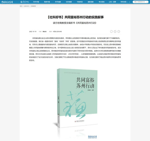 2022年度影响力图书从中选出155种好书,全面勾勒2022年阅读版图,反映时代变迁,体现时代精神。苏州大学东吴智库首席专家方世南所著的《共同富裕苏州行动》一书,入选“2022年度影响力图书主题出版榜单”。