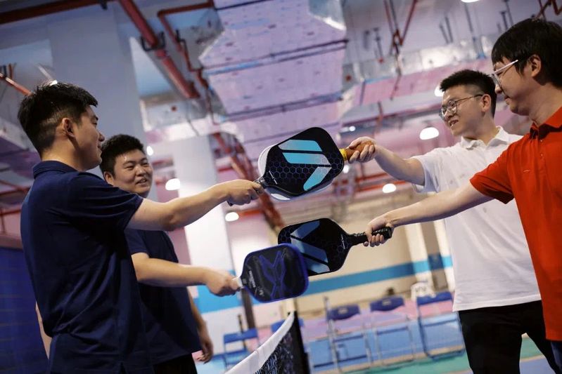 最近,南通“00后”贡钰迷上了室外版匹克球。“小区有露天球场就能打,对挥拍要求不高,有点风也不影响,对没太多运动基础或者不方便去专业场馆的人来说很友好。”从2022年的飞盘到现在的匹克球、腰旗橄榄球,爱交朋友、自称是“e人”(性格外向者)的她钟情的都是适合组局的休闲运动——一把拍子、一个塑料球、一片简易场地,就能聚起一群人。