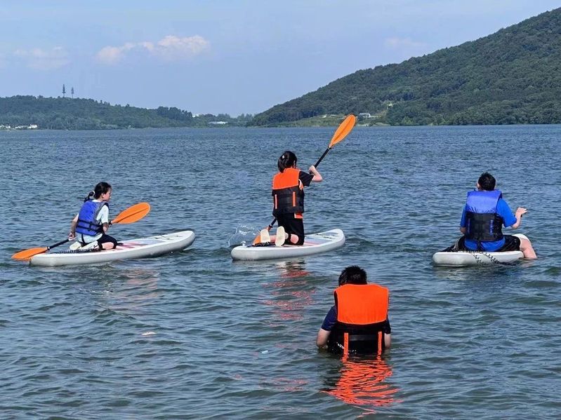 近年来兴起的桨板,也是因门槛低、玩法多走红。金牛湖奥帆中心水上运动总教练邱文介绍,目前奥帆营地开展的桨板类项目、培训、赛事等,受众群体明显呈现年轻化趋势,18—35岁群体占比超60%,暑期日均接待量同比增长150%。“它对动作要求不高,既能团队竞技,也能延伸玩桨板瑜伽、桨板球等。”邱文说,“很多人通过短视频或朋友推荐来体验,在自然中收获运动与社交的双重快乐。”