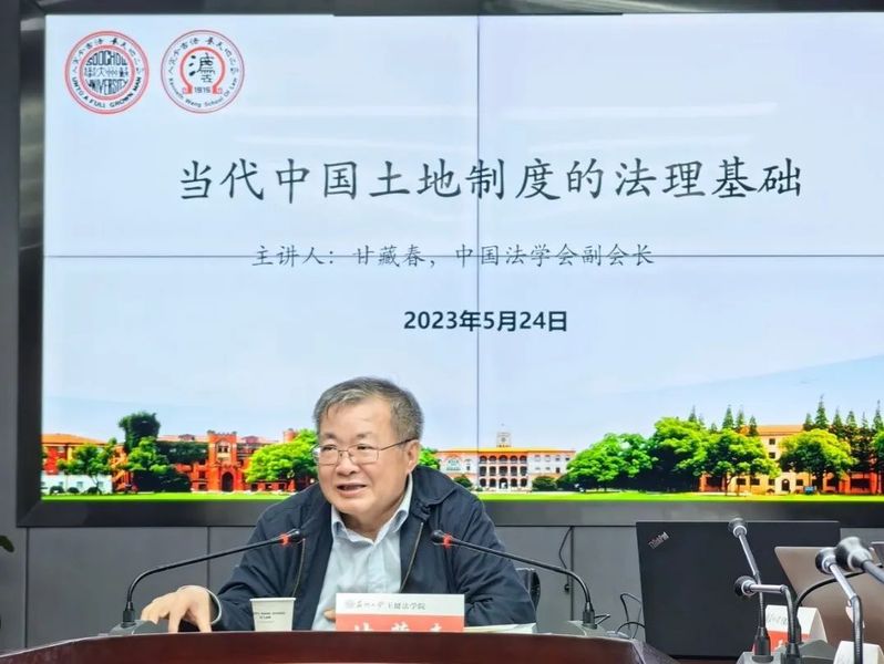 5月24日,由苏州大学东吴智库、王健法学院共同主办的第十二期东吴智库思享汇在王健法学院会议室举行。本期思享汇以“当代中国土地制度的法理基础”为主题,邀请中国法学会甘藏春副会长担任主讲嘉宾。思享汇由东吴智库财产法研究中心主任、王健法学院副院长程雪阳教授主持。