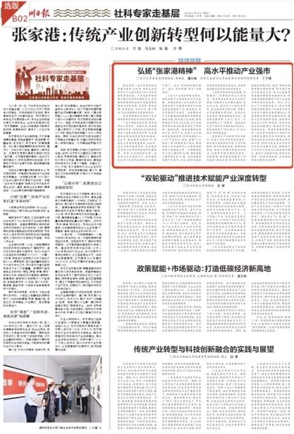 【编者按】《苏州日报》2025年6月24日B02版刊登苏州大学东吴智库副院长屠立峰等的文章《弘扬“张家港精神” 高水平推动产业强市》。文章阐述了张家港精神如何成为传统产业长期保持转型升级活力的内生驱动。现将全文转载如下,以飨读者。