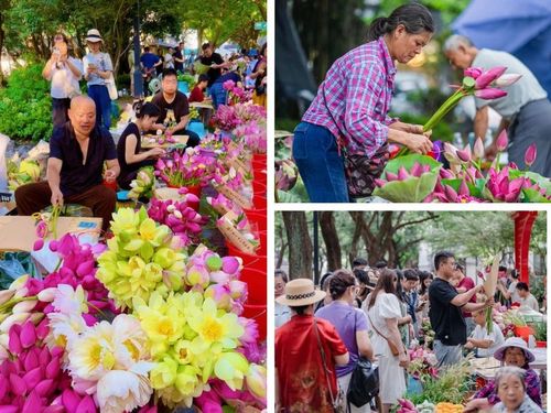 来自东山的孔阿婆介绍,荷花市集火了后,来这里买花的外地游客明显增多,荷花的销量最多能卖500多支。