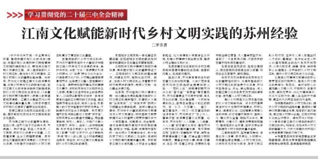 苏州日报 | 罗志勇:江南文化赋能新时代乡村文明实践的苏州经验