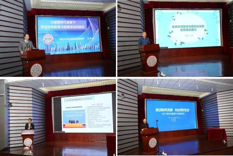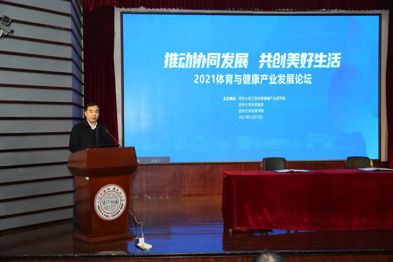 12月10日,由苏州大学江苏体育健康产业研究院、东吴智库、体育学院共同主办的“2021体育与健康产业发展论坛”在苏州大学天赐庄校区隆重召开。苏州大学党委常委、副校长张晓宏,江苏省体育局副局长、党组成员王志光,江苏体育产业集团党委书记、董事长顾晔,苏州三六六教育投资有限公司董事长周扬海,东吴智库首席专家王家宏,江苏省社会科学院研究员丁宏,江苏体育健康产业研究院研究员王国祥,美国伊利诺伊大学厄巴纳—香槟分校终身教授朱为模,东吴智库执行院长段进军等领导和专家学者出席论坛。论坛开幕式由人文社科处处长于毓蓝主持。