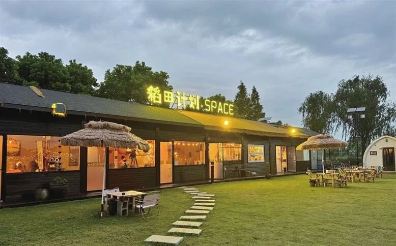 在太仓双凤庆丰村,“稻田计划·SPACE”则探索着另一种融合维度。这里有稻田咖啡与草坪音乐会两大元素:100亩稻田之中,木亭与观景台点缀其间,游客可手捧咖啡静赏稻浪;1500平方米的草坪上,以稻草、谷仓为元素的舞台定期举办音乐会,吸引大量年轻人光临。主理人顾海桥是村里的女婿。他告诉记者,“稻田计划·SPACE”今年6月开业即“爆火”,平日客流就有一二百人,周末可达四五百人。“客人们目标非常明确——来村咖放松身心,感受大自然与音乐的交融。”他告诉记者,人流量也带动了周边民宿的生意,约半数客人会选择在村里体验民宿,消费链实现延伸。