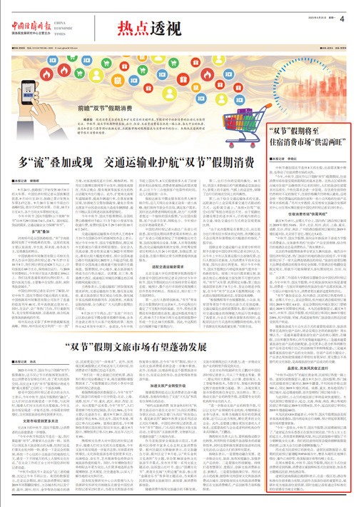 【编者按】近日,苏州大学东吴智库文旅融合发展研究中心周永博教授接受《中国经济时报》、《中国旅游报》采访,就“双节”假期住宿消费市场热潮、江苏文旅市场人气爆棚等话题发表看法。现将文章转载如下,以飨读者。
