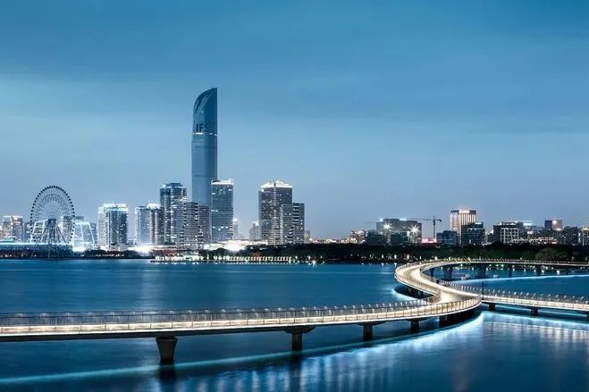 园区即景区、商务即旅游。作为全国唯一商务旅游特质的国家5A级旅游景区,位于苏州工业园区的金鸡湖景区已经成为向海内外游客展现苏州都市风貌的“人间新天堂”。文化会展、时尚购物、休闲美食、城市观光、中央水景等五大功能区,以全新思维诠释着苏州现代旅游的魅力,苏州中心、东方之门、音乐喷泉、月光码头、诚品书店等十大景观,给市民和游客带来时尚繁华的感官之旅。