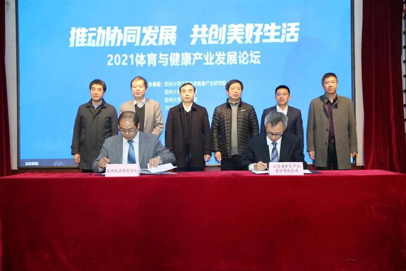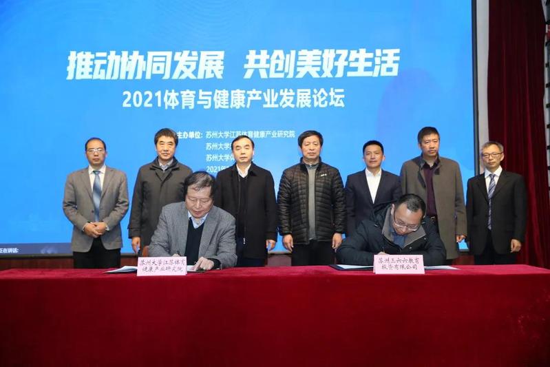 随后,在与会人员的共同见证下,江苏省体育产业集团有限公司与苏州大学体育学院、苏州大学江苏体育健康产业研究院与苏州三六六教育投资有限公司分别进行了签约合作仪式。合作方将在进一步加深了解的基础上深入合作,通过强强合作、集聚资源、集中目标、集成创新,共同推动江苏体育与健康产业高质量发展。