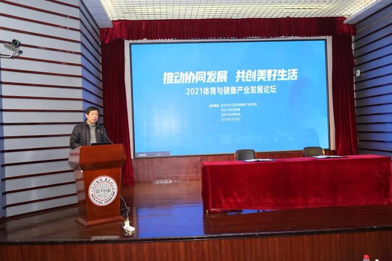 1210日,由苏州大学江苏体育健康产业研究院、东吴智库、体育学院共同主办的“2021体育与健康产业发展论坛在苏州大学天赐庄校区隆重召开。苏州大学党委常委、副校长张晓宏,江苏省体育局副局长、党组成员王志光,江苏体育产业集团党委书记、董事长顾晔,苏州三六六教育投资有限公司董事长周扬海,东吴智库首席专家王家宏,江苏省社会科学院研究员丁宏,江苏体育健康产业研究院研究员王国祥,美国伊利诺伊大学厄巴纳香槟分校终身教授朱为模,东吴智库执行院长段进军等领导和专家学者出席论坛。论坛开幕式由人文社科处处长于毓蓝主持。