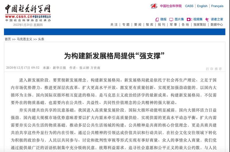 新华日报、中国社会科学网 | 方世南等:为构建新发展格局提供“强支撑”