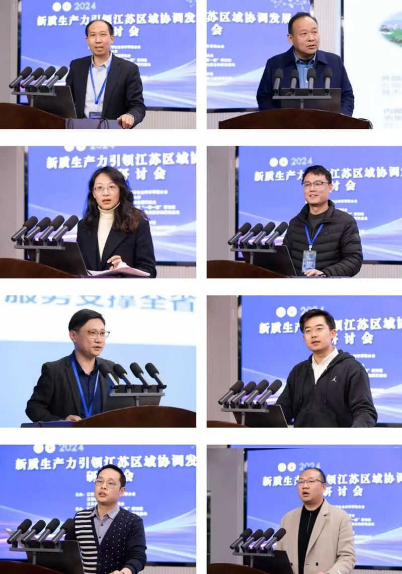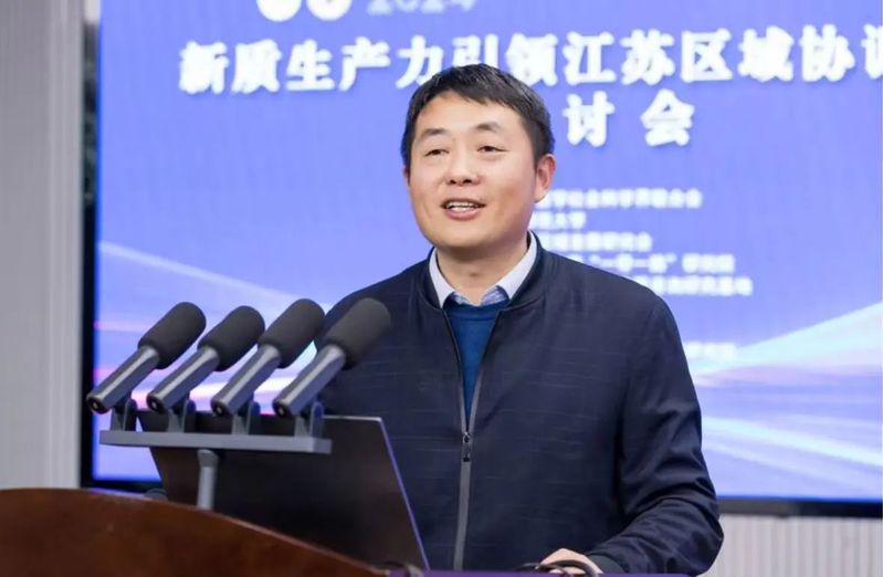 会议还设置智库交流环节。南京工程学院社会科学处处长、教授史修松,江苏师范大学科学技术研究院院长、“一带一路”研究院副院长、教授马晓冬,淮阴工学院苏北发展研究院副院长刘巍,江苏建筑职业技术学院智能制造学院副院长、副教授李雨潭,盐城师范学院沿海发展智库专职研究员郇恒飞,中国矿业大学建筑与设计学院副教授王梓懿,南通大学江苏长江经济带研究院讲师柏建成,南京财经大学公共管理学院讲师戴培超分别从区域协调发展、城乡高质量融合、人才培养、职业教育、海洋新质生产力培育、生态产品价值实现、绿色金融、战略性新兴产业供应链韧性提升与治理等角度为新质生产力赋能区域协调发展建言。