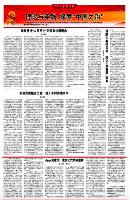 【编者按】《中国社会科学报》刊登东吴智库政府治理研究中心主任周义程教授等的文章《App乱象的“一主多元”式共治逻辑》。文章分析了App乱象的三种表现形式,并提出“一主多元”式共治路径,即在坚持党委领导和政府主导的前提下,精准界定政府方、运营方和用户方的治理职责,整合各方优势资源,从而使多方主体在App乱象治理问题上能够协同共进和优势互补。现将全文转载如下,以飨读者。