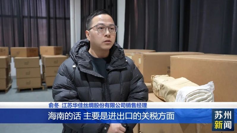江苏华佳丝绸股份有限公司销售经理俞冬表示,海南在主要进出口的关税方面,对公司是有利好的,还有一些物流方面,直接原料从广西到海南,可以降低15%到20%的物流成本,除了原料,还有成衣、服装面料这一块,后期可能是考虑在海南做一个中转仓储,提高运输的效率。