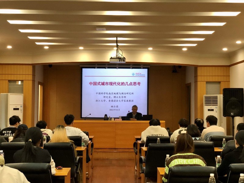 11月28日下午,第十四期东吴智库思享汇在红楼115会议室举行。本期思享汇以“中国式城市现代化的几点思考”为主题,邀请中国科学院南京地理与湖泊研究所研究员、博士生导师,浙江大学、香港浸会大学客座教授姚士谋担任主讲嘉宾。思享汇由东吴智库执行院长段进军教授主持,东吴智库研究员、商学院师生等70余人参会。