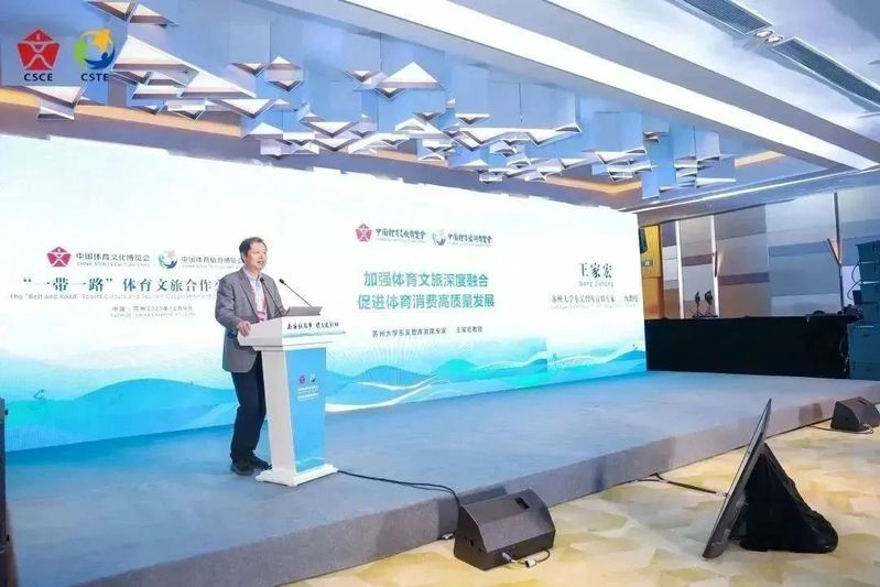 2023年11月9日上午9时,两个博览会分论坛“一带一路”体育文旅合作交流论坛在苏州文化博览中心成功召开。国家体育总局机关服务中心主任、党委书记宏江、中体产业集团党委书记、董事长兼总裁单铁,苏州大学东吴体育智库首席专家、苏州大学江苏省体育产业健康研究院执行院长王家宏,北京体育大学休闲体育与旅游学院副院长蒋依依,世界旅游城市联合会特聘专家、中国社会科学院旅游研究中心特约研究员王笑宇,武汉昊康体育产业发展有限公司常务副总经理倪志飞等领导专家出席论坛。