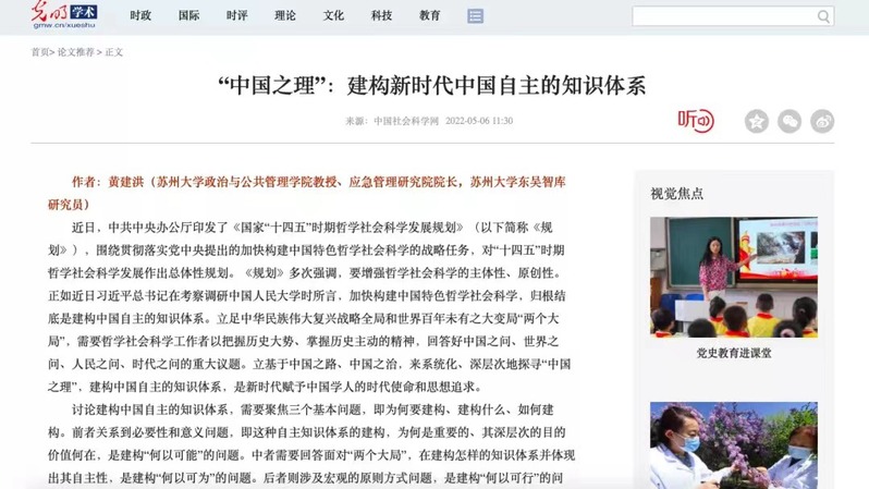 【编者按】近日,中国社会科学网刊登东吴智库研究员黄建洪教授的文章《“中国之理”:建构新时代中国自主的知识体系》,并被光明网学术版转载。文章聚焦于建构中国自主的知识体系,围绕三个基本问题,即为何要建构、建构什么、如何建构,进行解读与思考。现将全文转载如下,以飨读者。