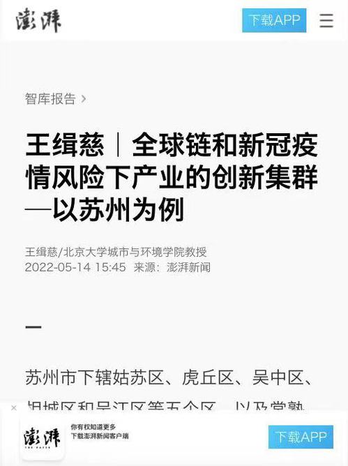 【编者按】近日,苏州大学东吴智库思享汇第十期特邀嘉宾著名的经济地理学家,北京大学城市与环境学院教授王缉慈在澎湃新闻撰文《全球链和新冠疫情风险下产业的创新集群——以苏州为例》。文章以苏州电子信息和纺织服装这两个产业创新集群发展为例,探讨了面临全球价值链和新冠疫情双重风险的挑战,苏州市产业升级选择创新集群之路的原因及实现路径。现将全文转载如下,以飨读者。