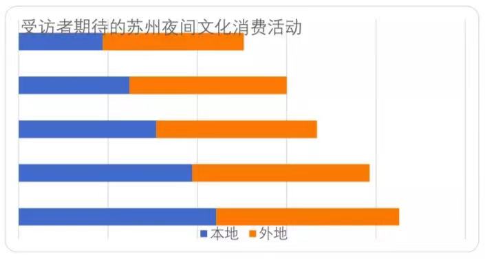 调研团队在平江路、苏州中心等夜间经济活跃区域对消费者随机做了采访。在对苏州夜间经济品牌认知态度上,受访者均认为苏州夜间经济应该体现高品质。在消费偏好上,2成受访者表示“会更喜欢有创意、比较潮流的夜间消费活动”,3成多表示“对有苏州文化特色的活动更感兴趣”。访谈结果表明,市民夜间消费活动除了满足社交需求外,还体现为求新猎奇的需求和文化素养提升需求,表明消费者对苏州夜间项目的文化特色有很高关注。