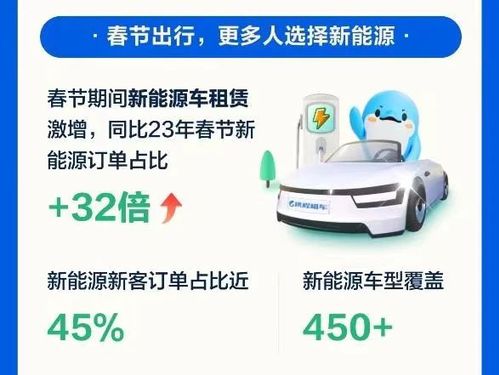 低碳环保的绿色出行,成为自驾领域的重要发展趋势。一嗨租车旗下出行研究院发布的报告显示,21-30岁的年轻人更偏爱租用新能源车,其中比亚迪系列、特斯拉系列、荣威系列新能源车最受欢迎。目前,携程租车平台新能源车型已覆盖超450种品类,最新数据统计显示,春节期间携程新能源车租赁激增,同比2023年春节新能源订单占比增长超32倍,新能源新客订单占比近45%。