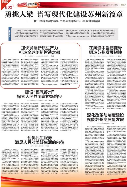 综上,苏州正坚定不移以新质生产力推动高质量发展,做强实体经济、攻坚关键核心技术、深化数智转型、优化营商环境、扩大开放合作,在新型工业化道路上勇立潮头,为全国发展新质生产力贡献苏州智慧与苏州力量。