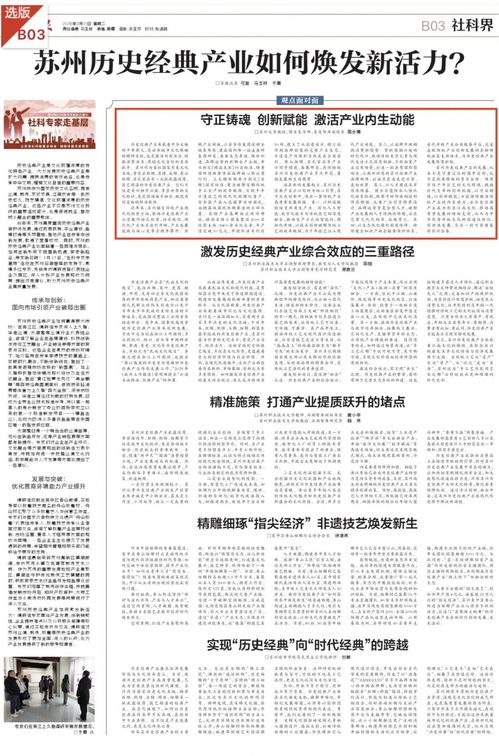 【编者按】近日,《苏州日报》刊登东吴智库副院长周永博教授的文章《守正铸魂 创新赋能 激活产业内生动能》。文章为苏州历史经典产业如何激发新活力提供了新的思考和建议。现将全文转载如下,以飨读者。