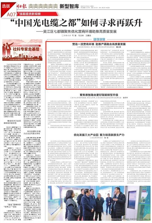 【编者按】近日,苏州市社科联与苏州日报联合推出的“社科专家走基层”开设“‘苏州智造’强基提质新观察”专栏,首站来到“中国光电缆之都”的吴江区七都镇。苏州大学东吴智库副院长屠立峰副教授参加调研并发表文章《营造一流营商环境 助推产镇融合高质量发展》,从专家视角探解镇域经济的发展新路径和新成效,为七都镇营造一流营商环境、助推产镇融合高质量发展建言献策。现将观点转载如下,以飨读者。