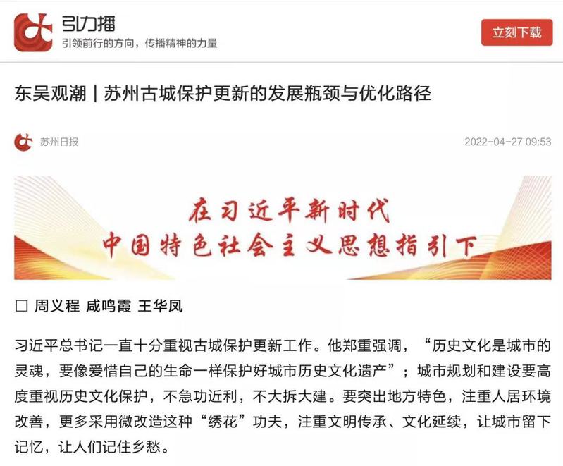 【编者按】近日,《苏州日报》刊登苏州大学东吴智库政府治理研究中心主任周义程教授等的文章《苏州古城保护更新的发展瓶颈与优化路径》。文章指出苏州在探索古城保护更新发展道路上展现了“一河一巷尽入画,一街一坊皆盛景”的全域美丽新形象,显著提升了“江南文化”品牌的标识度,但也面临有待破解的发展瓶颈。为此,苏州作为全国首个也是唯一的国家历史文化名城保护区,需要直面瓶颈,有针对性地寻求相应的优化路径。现将全文转载如下,以飨读者。