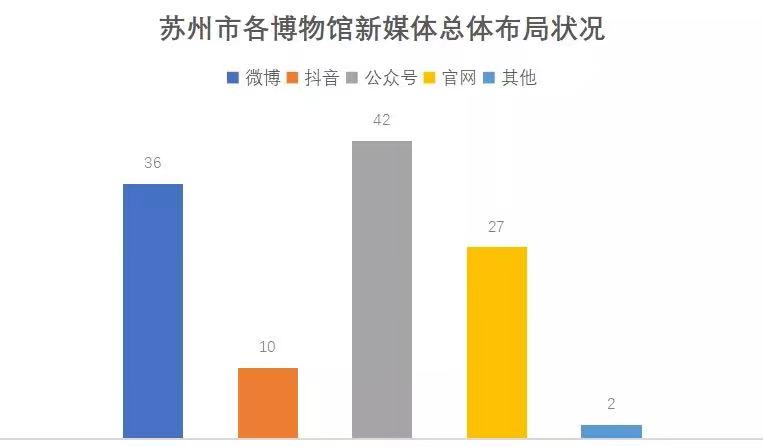 新媒体传播矩阵,既承担博物馆整体形象展示、信息发布与互动、预约购票等基础服务,又具有全方位塑造和呈现博物馆形象、传承和创新博物馆文化重要作用。苏州市各博物馆布局的新媒体渠道主要为微信公众号、微博与官网,只有几家头部博物馆拓展了其他新媒体平台(详见图2)。