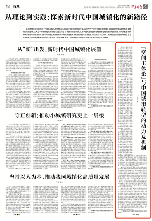 【编者按】1月24日,《新华日报》刊登苏州大学东吴智库执行院长段进军教授的文章《“空间主体论”与中国城市转型的动力及机制》。现将全文转载如下,以飨读者。