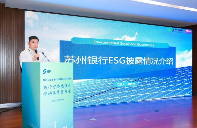苏州银行总行科创绿色金融部副经理康昕翔作《苏州银行绿色金融管理系统项目,探讨ESG报告在金融服务中的作用》主题报告,报告立足苏州银行ESG实践,对绿色金融管理系统进行了阐述,对该系统的6大管理功能进行了重点介绍,同时讲解了未来苏州银行的ESG实践计划。