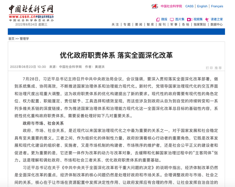 中国社会科学网 | 黄建洪:优化政府职责体系 落实全面深化改革