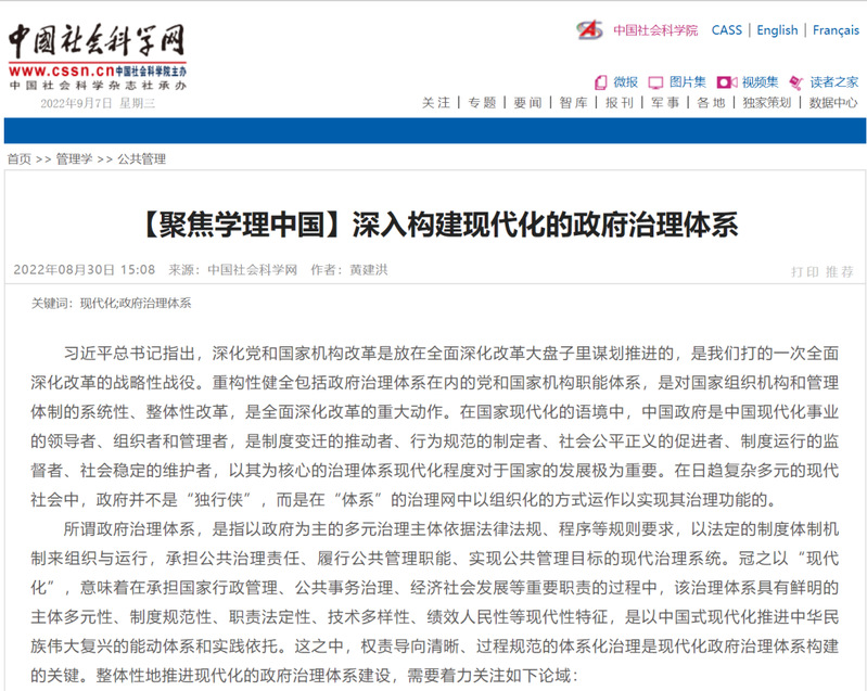 【编者按】近日,中国社会科学网刊登东吴智库研究员黄建洪教授的文章《深入构建现代化的政府治理体系》。文章指出,政府是在“体系”的治理网中以组织化的方式运作以实现其治理功能的,而权责导向清晰、过程规范的体系化治理是现代化政府治理体系构建的关键。因此,需要着力关注七大论域以整体性地推进现代化的政府治理体系建设。现将全文转载如下,以飨读者。