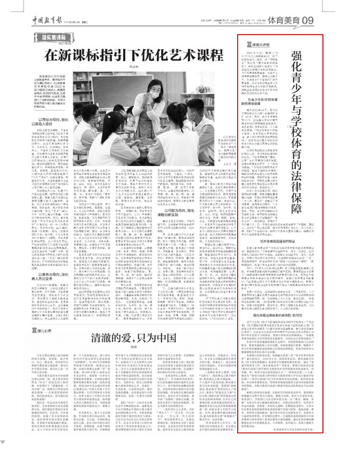 2022年6月,新修订的《中华人民共和国体育法》(以下简称体育法)将第三章“学校体育”修改为“青少年和学校体育”,并在总则第十条提出“国家优先发展青少年和学校体育,坚持体育和教育融合,文化学习和体育锻炼协调,体魄与人格并重,促进青少年全面发展”的重要条款。这是依宪治体在青少年和学校体育改革中的具体体现,反映出党和国家对青少年和学校体育发展的关心和重视。
