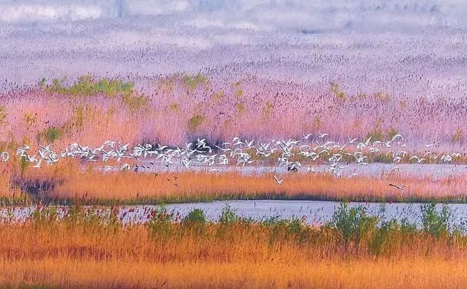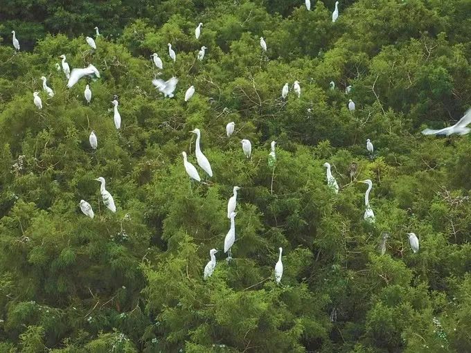 泗洪县洪泽湖湿地溧河洼临淮段白鹭成群。张连华 摄 (视觉江苏网供图)