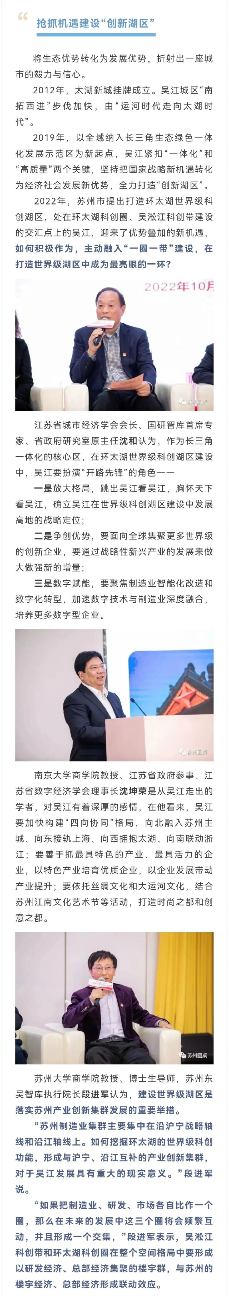 10月28日,东吴智库执行院长段进军教授受邀参加“非凡十年路 奋进新征程”——吴江区学习宣传贯彻党的二十大精神暨社科名家对话吴江思享汇活动,与其他全国社科知名专家一同为吴江把脉定向,总结吴江十年发展成就,共同探讨吴江发展方向和路径,把党的二十大精神转化为推动吴江高质量发展的火红实践。